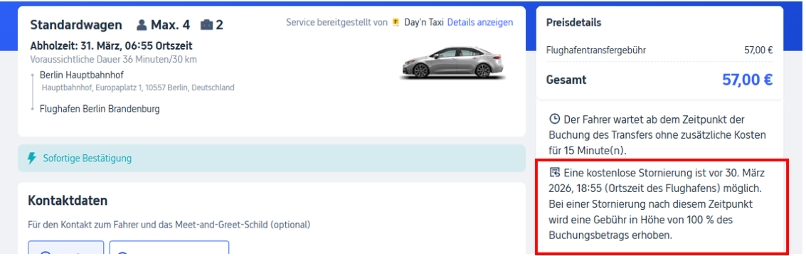 - Kostenlose Stornierungsfrist verpasst? Es fällt eine Gebühr von 100 % an.