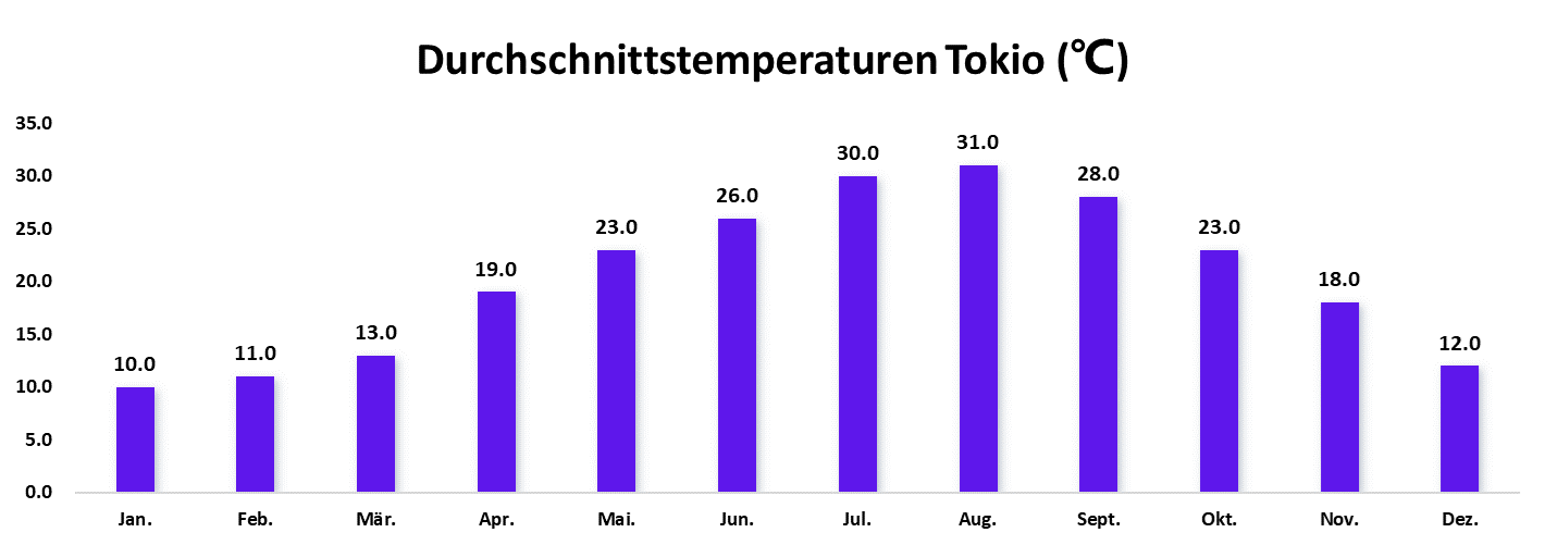 Sommer (Juni bis August) | zwischen 25 °C und 33 °C | Warm, feucht, Gewitter möglich | Manchmal gibt es zwar tolle Rabatte, aber die Nachfrage ist oft riesig! |