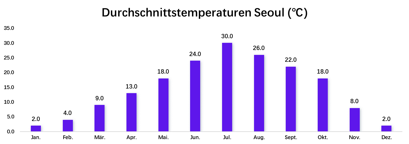 Im Frühling und Herbst bietet Seoul ein mildes und angenehmes Klima, perfekt, um durch die Stadt zu schlendern. Kirschbäume, Glyzinien und rote Ahornbäume verwandeln die Parks und Paläste in spektakuläre Landschaften. Diese Jahreszeiten laden dazu ein, die lebhaften Viertel, die historischen Stätten und die grünen Oasen in vollen Zügen zu genießen.
