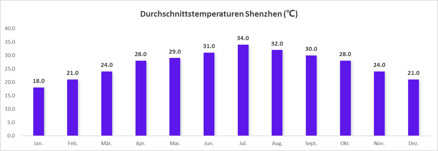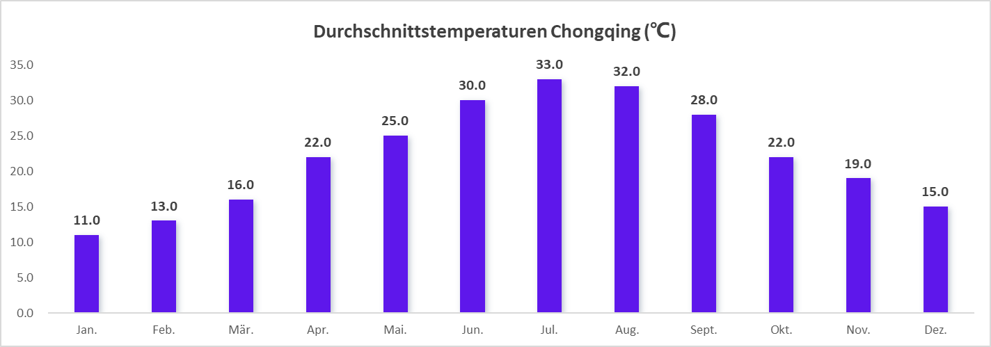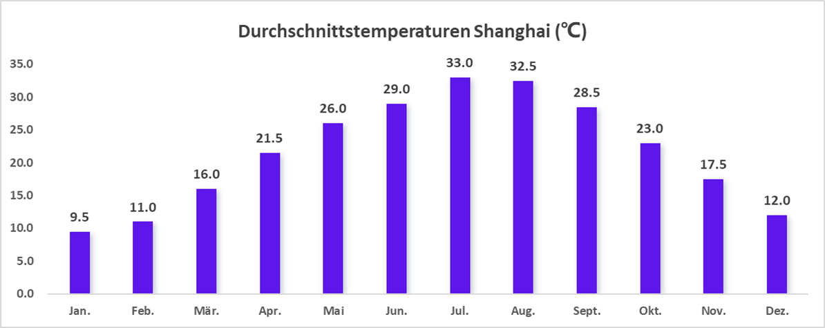 Quelle: Daten basieren auf Shanghais Durchschnittstemperaturen der letzten 5 Jahre.