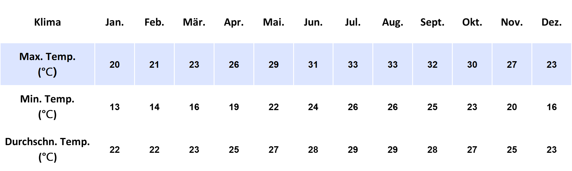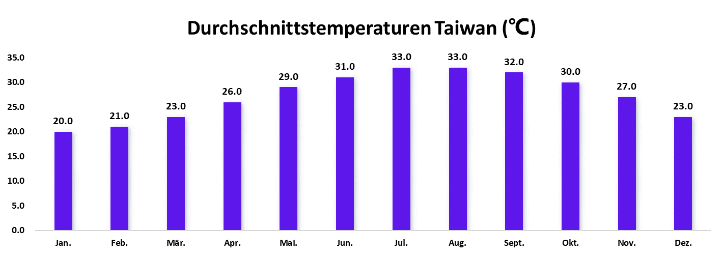 *Quellen: Central Weather Bureau of Taiwan (CWB) & Weather2Travel, Durchschnittswerte 2019–2024