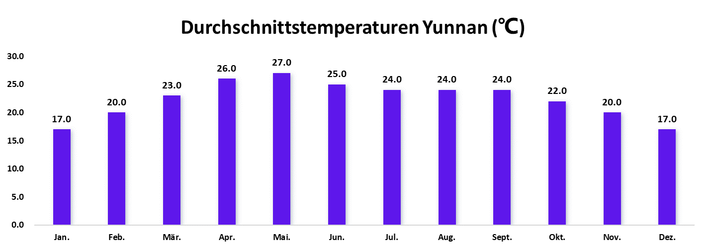 Quelle: Die Daten basieren auf den Durchschnittstemperaturen Yunnans der letzten 5 Jahre.