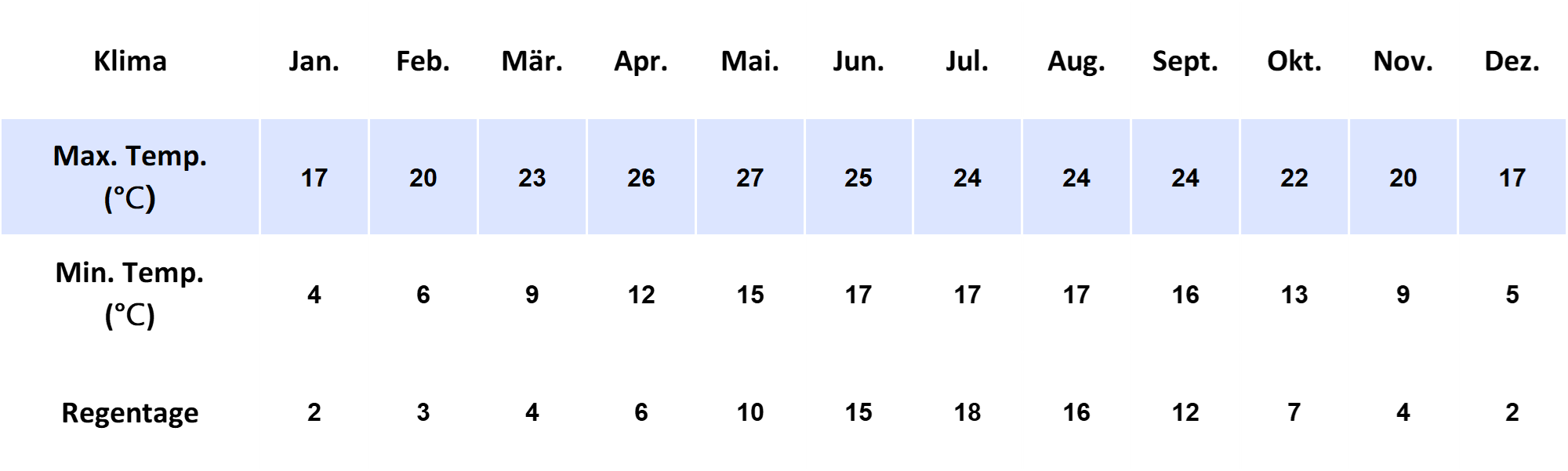 ❄️ Winter (Dez. bis Feb.) | 5 °C bis 18 °C | frische Morgen, sonnige Tage | niedrige Preise |