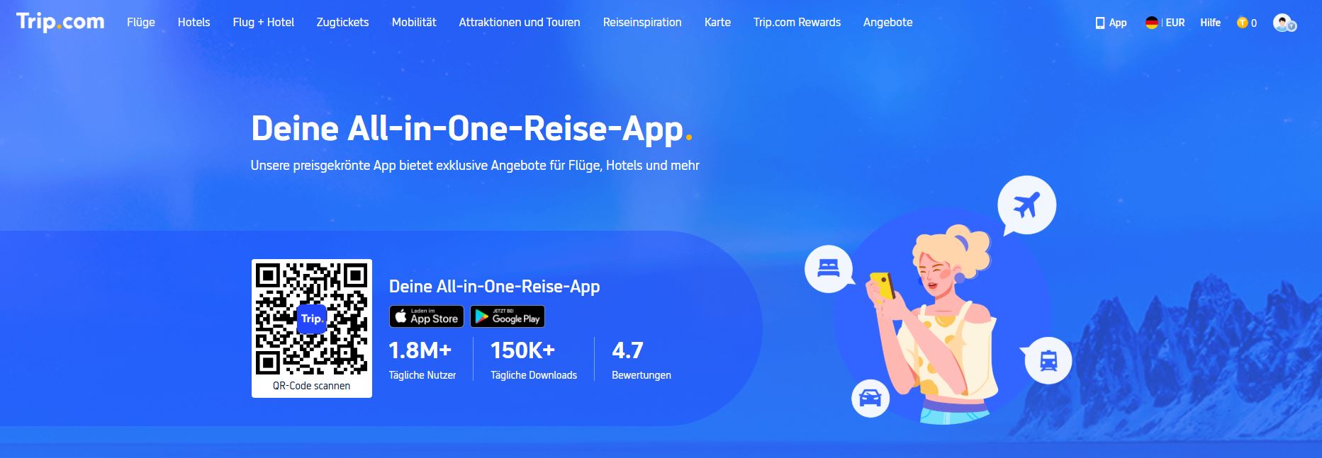 Nutze Reise-Apps | Nutze Apps wie Trip.com für Angebote und Benachrichtigungen |