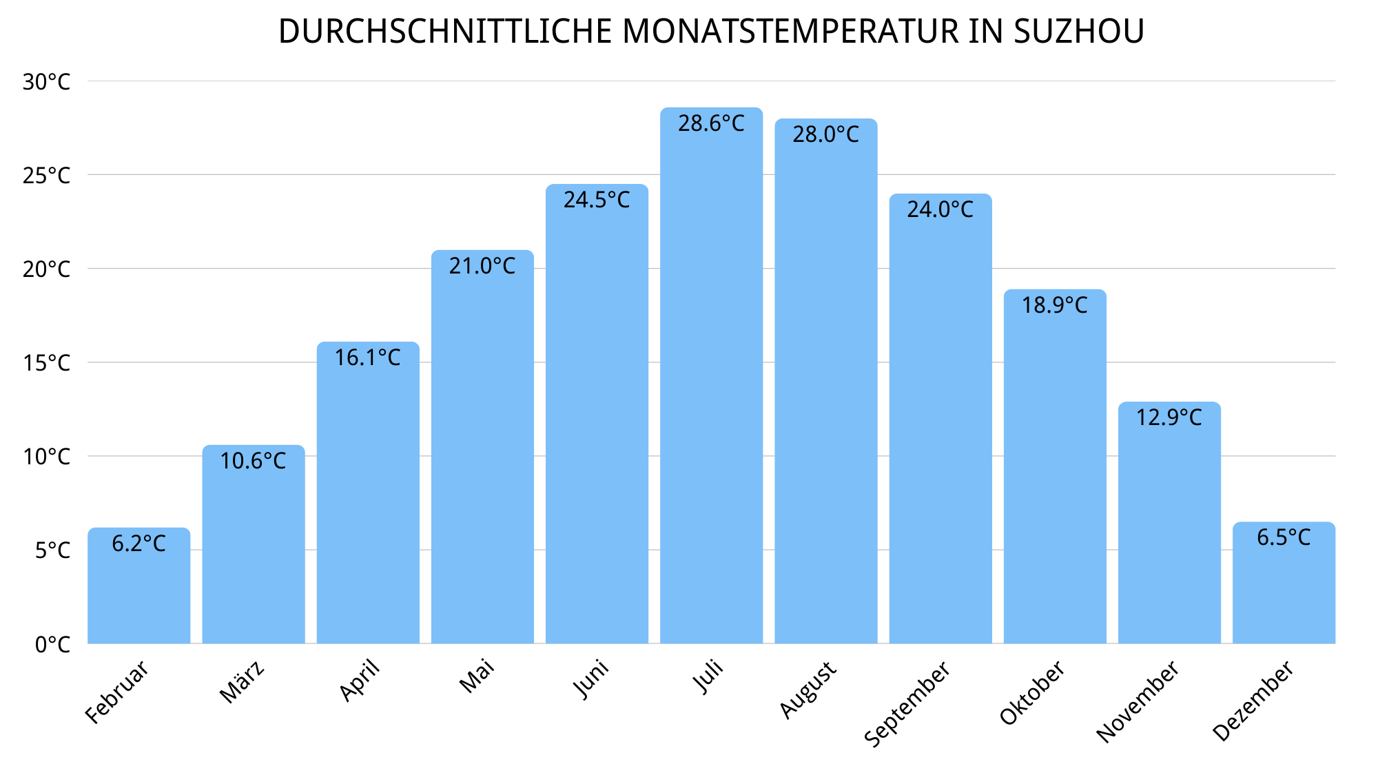 Egal, für welche Jahreszeit du dich dich entscheidest, Suzhou findet immer einen Weg, dir ein Programm zu bieten, das deinen Erwartungen gerecht wird. Ganz gleich, ob es ein Garten, ein lokaler Markt oder ein Spaziergang zwischen den Kanälen ist – du wirst es mehr genießen, als du dir vorstellen kannst.