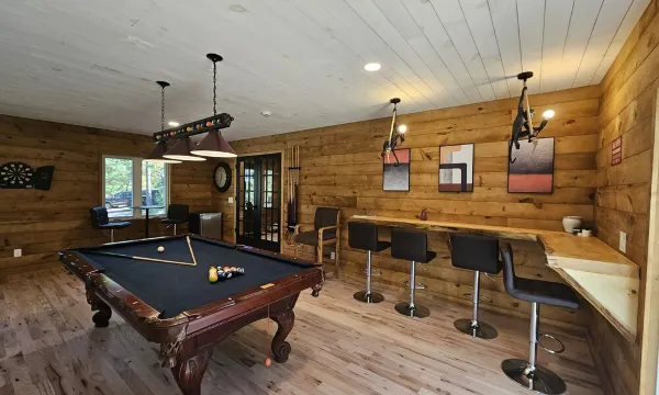 Newly remodeled cabin on 6 acres with own climbing rock, heated swimming pool, hot tub and game room. Come relax at this serene place. Minutes away from hiking trails. 20 minutes away from Wisconsin Dells fun.About pets:No pets allowed.About checkOut:Check out before 11:00 AM.About children:Children allowed: ages 0-17.About customRules:No disruptive events. Neighbors will call us and Sheriff.