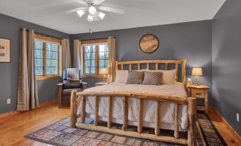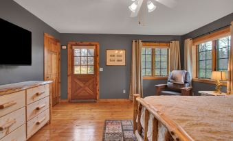 This place worked out perfectly for my family. We had 2 married couples and a 7 month old while there, and the main floor layout was large enough to accommodate everyone and still give us room to spare. Also, the main floor has a very convenient layout with high quality features. Starting the day with a cup of coffee in the screened in porch helped set the tone for the day. This cabin is located in a very quiet neighborhood on a secluded lot, so you feel like you’re out in the country. We will definitely try to reserve this cabin if it coincides with future vacation plans.