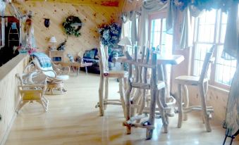 Relax in our beautiful Great Room enjoying the 30 foot vaulted ceilings while taking in the beauty of the hand painted walls that will leave you in awe and with a surprise.