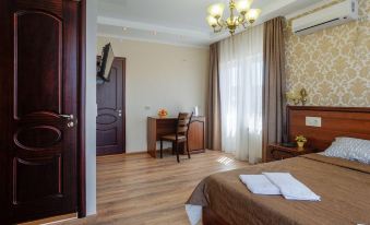 Guests can book rooms of several categories: Standard, Luxury and Luxury Apartments. All of them are decorated in a modern style and comfortably furnished, equipped with a split system, mini fridge, wardrobe, flat-screen TV. Each room has a private bathroom with a shower and a hairdryer. The rooms of the Luxury Apartment category are equipped with a kitchen.