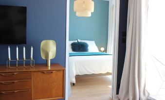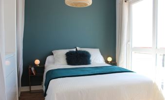 The decor is refined in the art deco and Nordic taste we like: beautiful mural in the living room, chandelier globes, fully equipped black kitchen matt tile subway in the kitchen and bathroom. Charm and comfort!