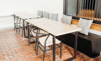 Our brick room is perfectly located between the kitchen and saltwater pool. It has a wall of windows with stunning water views. This space has a built-in banquet with plenty of seating. It also has a wet bar that is perfect for making drinks to entertain. If that's not enough, you can enjoy playing a game of pool on our beautiful slate pool table.