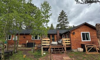 Archway to the Rockies...Discover this delightful 3-bedroom gem in Allenspark with stunning views of Mt Meeker and Longs Peak, The property sites on 11 acreas of towering trees and aspen groves. The year round stream that runs through the property has three waterfalls, and a pooled area with rainbow and brown trout. This cozy, updated cabin boasts of it's historic log and pine features, original pine flooring throughout, while updates to modern living. It offers 1 king bed in master bedroom. There are two additional bedrooms with queen beds and blow up mattress for extra sleeping options. Cozy up by the fireplace in the living room. The kitchen is equiped with everything you need to cook for a feast or a BBQ on the patio. Enjoy the convenience of amenities like a washing machine, dryer, hair dryer, heating, and WiFi. The bathroom is equipped with a shower and two sink vanity. Sit and sip in the hot tub, which has full view of Mt Meeker and Longs Peak after a day of hikes and adventures, or by three cozy coves creekside waterfalls. The patio's have firepits and comfortable seating, one patio with covered pergola has view's of Mt Meeker, one stream side. Games and swings for kids of all ages. Large fenced in yard to keep kids and pups safe. Explore the trails on the property. We're just minutes from St Catherine Church on the Rock, Longs Peak enterance to RMNP, and 15 mins to the enterance to RMNP and the town of Estes Park.