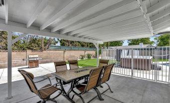 This new and stylish villa is perfect for family and group trip to Disneyland, Convention center and Socal attractions. Our newly remodeled home is walking distance to Disneyland in a quiet neighborhood with 5 bedrooms, 3 bathrooms and 12000 sq/ft amazing backyard. It equipped with 8 big screen TVS includes 100 inch projection TV with home theater systems for movies, spots programs. Backyard has a mini golf putting green, fire pit, heated pool, spa, BBQ and 2 separated covered patio areas to enjoy and relax. The game room has pool table, Ping Pong table and big screen TV to entertain. The house is newly remodeled modern bright and airy. All the comfy beds will give you a good night sleep. It is 4-5 minutes drive to Disneyland and convention center. Or you can walk to Disneyland with a little over a mile distance. Disneyland shuttle is down the street on Katella and Walnut with blue roof. It cost $6 a day for an adult $2.5 for kid. Uber or lift to Disney entrance is $7-10 each way. The grocery store, restaurants, bank, Starbucks, donut shop are right at the corner with in 3-5 minutes walk. This is the great house for you and your family, friends to have a great time.About pets:No pets allowed.About checkOut:Check out before 11:00 AM.About children:Children allowed: ages 0-17.About checkIn:Check in after 4:00 PM.About smoking:Smoking is not permitted.About minBookingAge:Minimum age to rent: 25.About events:No events allowed.