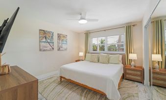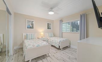 Location!!! North end of Anna Maria Island . Steps to the Bean Point Beach and everything you need for your perfect Anna Maria Vacation. Our resort like property consists of four units surrounding a free style heated pool. Rent one unit or all. Perfect for a group of extended family and friends who want their own place but still be right together as a group. Heated inground pool, steps to the Bean Point Beach. Parking is right at the front of the property and is limited to two cars. The unit features a private patio area and outdoor shower. Gas grill available by the poo area. This unit has a king , 2 twin beds. Wifi internet, TV's in all rooms.