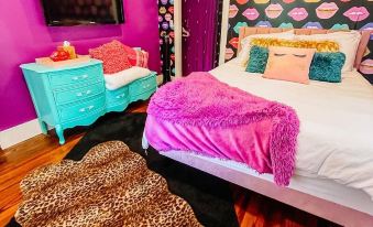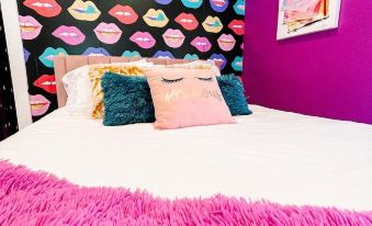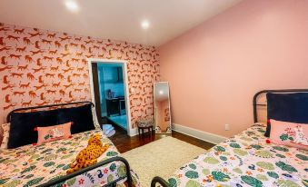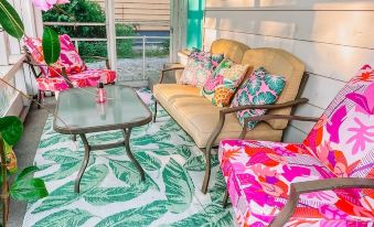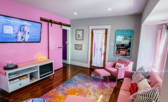 This one-level home is beautifully curated and uniquely furnished to give our guests the best experience. Pinky’s Cottage has a fully equipped kitchen with a crockpot, k-cup coffee maker, pots and pans, a Kitchen Aid mixer, beverage fridge, fridge/freezer combo, gas range and so much more! We provide linens and bath towels as well toilet paper and paper towels. Additional items such as themed party decor, pre-delivery of food/beverages, and other items to elevate your experience are available, at a fee, per request.
