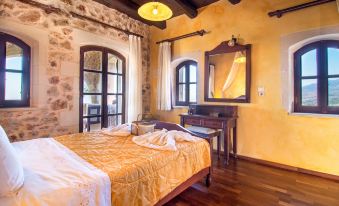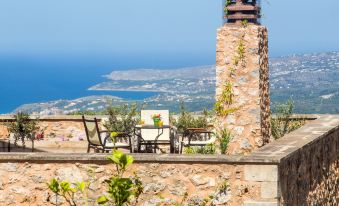 Verfügt über eine Innenveranda mit Panoramablick auf die gesamte Gegend von Apokoronas und das kretische Meer, einen unabhängigen Innenhof und eine private Dachgartenterrasse.