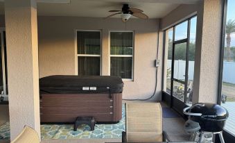 Discover the beauty of Apopka from this 2-bedroom private apartment in house. This charming property features 1 queen bed and 1 sofa bed, perfect for a small group of guests. With amenities like iron and ironing board, heating, AC, and WiFi, your stay will be comfortable and convenient. The bathroom includes a bathtub for a relaxing soak after a day of exploring. Our place will help you feel at home while you're traveling in Apopka. We are less than 30 min from theme parks and hosts will help guide you to other areas of interest and restaurants. We are very close to several major wedding venues.Central AC and heat with full house generator so you are never without power. Large fenced backyard well landscaped. Screened porch with in season hot tub, fire pit and grill year round and comfy furniture and table. Apartment equipped with all you need. Microwave, dining area, fridge. All dinnerware. Two large screen TVs with big channel line up including Netflix.Private concrete parking pad and entire community is gated. Beautiful home, gorgeous neighborhood very safe with sidewalks and parks.About pets:Pets allowed: dogs and cats (limit 2 total).About checkOut:Check out before 11:00 AM.About children:Children allowed: ages 0-17.About checkIn:Check in after 3:00 PM.About smoking:Smoking is not permitted.About minBookingAge:Minimum age to rent: 21.About events:No events allowed.