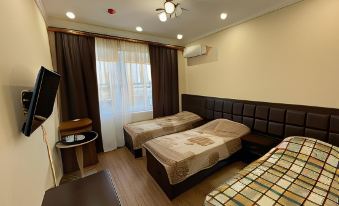 It offers spacious, comfortable rooms of various categories, capacity and equipment. Each room is equipped with comfortable beds, functional furniture, air conditioning, a desk, a flat-screen TV, a private bathroom, bed linen and towels. The rooms offer stunning views of the streets and parks of the city, and high-quality service makes you feel at home.