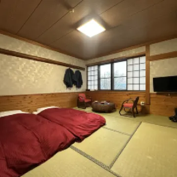 Dies ist ein kleines Ryokan. Es ist sehr sauber, da keine Schuhe erlaubt sind. Frühstück und Abendessen sind in Ordnung. Sie werden als Set serviert. Zu beachten ist, dass es im Zimmer kein Badezimmer gibt, nur eine Toilette. Duschen ist nur im Onsen möglich.