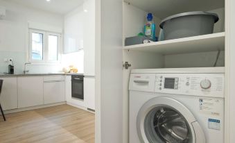 The apartment features a premium COCO-MAT bed handcrafted from 100% natural materials for a natural, restful sleep, 300Mbps optic fiber Wi-Fi internet ideal for remote work, and a bright, minimal design throughout.