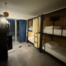 Service and amenities were great. Everything you need is there and is provided. Bathroom in the dorm was not the cleanest there was a bit of mould in the shower and ventilation in there was bad. Stayed in a mixed dorm of 6 and was grouped with all guys would have been nicer if there was more of a mix of genders rather than 1 female and 5 guys. Social hostel with a lot of space to work remote. Location was in the ghetto so I didn’t feel too safe at night.
