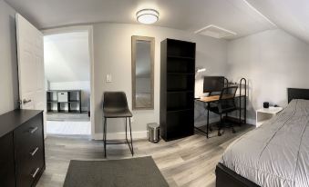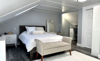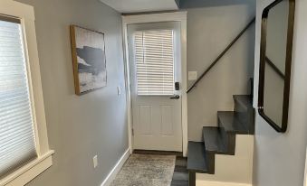 This 1000ft² apartment has been thoroughly renovated and thoughtfully furnished with everything you need to feel at home (and then some). The kitchen is ready to go with ample cabinet space, butcher block countertops, stainless steel appliances (including a dishwasher!), and all the kitchen essentials we could think of. In the main bathroom you'll find a 48" shower with a 10" rainfall shower head and matching handheld sprayer, as well as an ultra-large capacity smart washer/dryer set. The living room is fully decked out with a microfiber leather sectional, lift-top coffee table, 75" 4K Samsung TV, Roku 4K Streaming, and huge Klipsch tower speakers. Upstairs you'll find the master bedroom, complete with its own half bath, small walk-in closet, and office nook. The second bedroom has all the essentials including a 6-drawer bureau and full-size desk. The upstairs common area has a futon for even more sleeping options. Centrally located in Augusta - A stone's throw from Water Street where you'll find Mill Park and lots of shops, bars and restaurants along the Kennebec River. A short drive from the Marketplace at Augusta, the Capitol Building, and the Augusta Airport. Less than a 20 minute drive from both the Belgrade and Winthrop Lakes Regions.About pets:No pets allowed.About checkOut:Check out before 11:00 AM.About children:Adults only.About customRules:Extra cleaning fees will be charged for:
