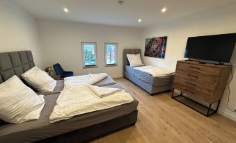 Der nächstgelegene Flughafen ist Flughafen Rostock-Laage, der etwa 37 Minuten mit dem Auto von der Unterkunft entfernt (48,2 km) ist.Wie komme ich von dem nächstgelegenen Flughafen zu Modern and comfortable apartment with 2 bedrooms, tower room and balcony.?