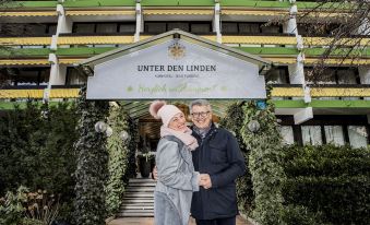 Beste Lage. Sehr Zentral und doch in ruhiger Seitenstraße gelegen, die von Laubbäumen gesäumt ist. Kein Verkehrslärm. Die Zimmer sind relativ einfach, aber sauber. Man muss das gute Preis-Leistungsverhältnis sehen. Wer ein Luxus-Hotel sucht ,muss auch bereit sein mehr Geld auszugeben. Ich war im "Unter den Linden" wirklich zufrieden. Küche o.k.; gepflegter Garten mit Liegewiese und Terrassenbereichen; Aufzug; Thermalbad.