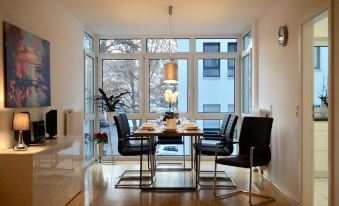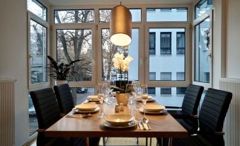 Our spacious apartments in the city center of the spa town of Bad Neuenahr-Ahrweiler in the Ahr Valley invite you to relax and enjoy. With the in-house elevator you can access the apartments on the 1st Reach the top floor of the property comfortably and barrier-free. The glass bay window appeals to sunbathing all day long with its southwest design. With bedrooms, two bathrooms and a “loft-like” living area with an integrated fitted kitchen, the apartment is ideal for an occupancy of four people.