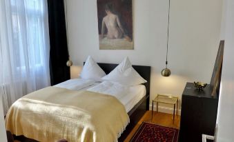 Our villa is also a house of art. The entrance welcomes you with paintings by the painter August Bresgen. In the apartment you can see photographs by young photographer Alia Malin Krone, pictures by Wilhelm Tarnow and Christine Scheid.