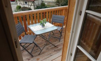 Our cozy apartment on the upper floor of our half-timbered house with a separate entrance and parking directly at the house is waiting for a visit.