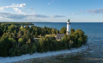 We are happy to offer a fire pit for you to use. We kindly ask you provide your own firewood. The gas station in Bailey's Harbor offers it for sale. There are lawn chairs available to use in the front closet near the full bathroom. Please bring them back inside when you are done to prevent them from getting wet for future guests.