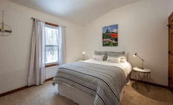 We visited with our kids and another family. Plenty of space for 4 adults & 5 kids ages 8-13. Very clean. Well stocked kitchen. Yard games, basketball hoop & fire pit were great. Location is awesome-walk down to the lake, close to Baileys Harbor and easy to get to Egg Harbor, Fish Creek or Sister Bay.