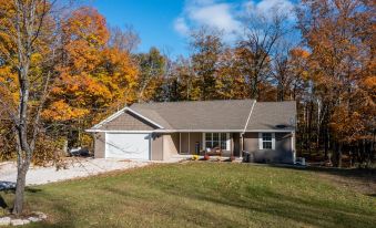We came up for a family reunion during Fall Festival. Our group consisted of my husband and I, our 2 adult children with their significant others, our nieces and nephews aged 9 through 22, and our dogs. There was plenty of space for everyone. The weather was beautiful, we enjoyed hanging out on the deck outside, playing cards and games at the huge dining room table, and playing in the huge lower level. They had everything we needed in the kitchen, and left a sweet welcome package as well. Our host responded very quickly when I asked the night before coming out if there was a crock pot (there was). Everyone in our group commented that they want to stay here again next year. We can't wait to come back.