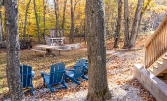 Wooded back yard, plenty of room for outdoor games. Firepit, chairs and picnic table.