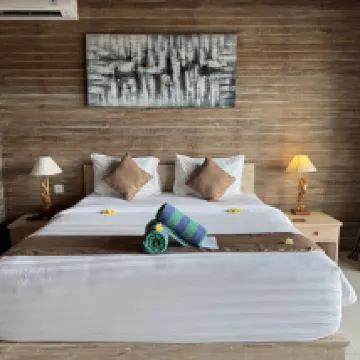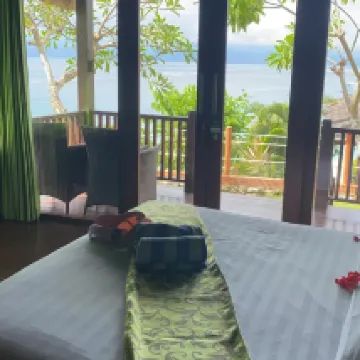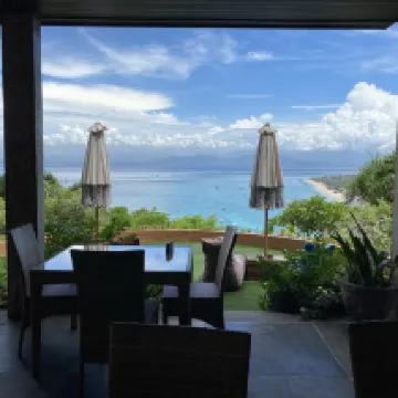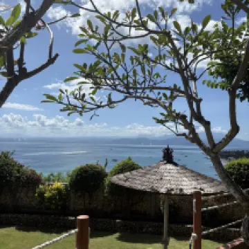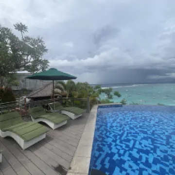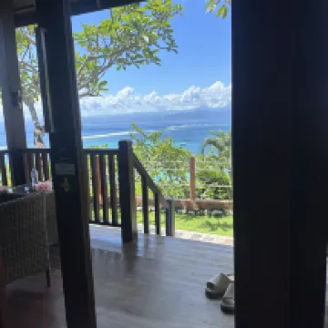 Great view of the beach below but must rent motorbike to get around. Lots of birds on the roof so very difficult to sleep in as they chirp loudly around 6am, plus can hear the temple sounds around the same time.