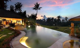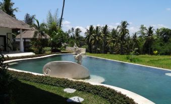 Die Unterkunft Frangipani Villas mit Bergblick in Ubud bietet Übernachtungsmöglichkeiten mit einem Außenpool, einem Fitnesscenter, einem Garten, einer Gemeinschaftslounge und einer Terrasse. Kostenloses WLAN ist in der ganzen Unterkunft verfügbar.