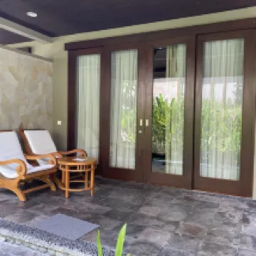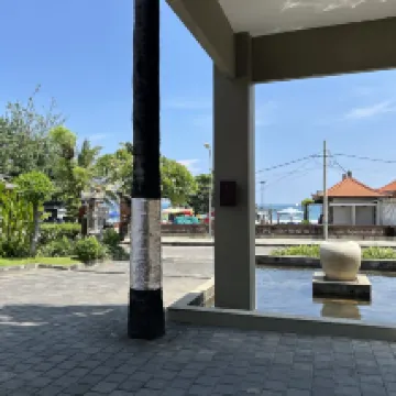 Wonderful hotel in front of Legian Beach. Location was great. Room it self was lovely. There is no iron and ironing board in the room. Hairdryer in bathroom is one of those old small ones attached to the wall. So it’s a bit annoying. Bathroom is a bit outdated. Needs renovating here and there. Bed was comfy. Tv channels had a lot of channels to suit everyone. Breakfast was average. Service was great though. Staff super helpful and friendly. Pool area was great. We also had spa treatment we had massage and body scrub it was average for the money. Could have been better. It wasn’t entirely relaxing. You can hear a lot of noises , the spa staff giggling and laughing outside the room. Overall the surrounds was lovely. Will stay again but won’t be booking any spa treatments.