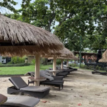 Ausgezeichnetes Hotel für das Geld. Der Strand etwas weiter rechts ist frisch, alle Leute aus diesem Hotel gehen dorthin. Das Hotel ist sehr schön im asiatischen Stil eingerichtet.