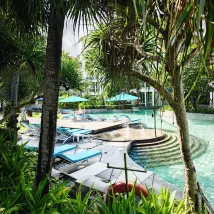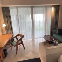 Das Hotel gleicht einem Resort im Inneren, mit Swimmingpool, Landschaft, Frühstück, Gartenblick und Wasserbar. Direkt vor dem Zimmer befindet sich ein Swimmingpool, der mit der Wasserbar verbunden werden kann, was großartig ist.