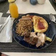 Das Frühstück schmeckt gut, vor allem die verschiedenen Chilischoten nach indonesischer Art, die ganz lecker sind, aber das Essen lässt etwas zu wünschen übrig und das Brot ist nicht lecker.