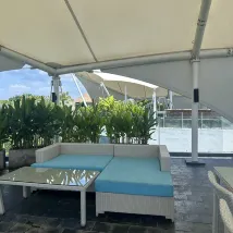 Die Umgebung ist sehr gut. Vom Infinity-Pool aus kann man die Berge und das Meer sehen, was sehr schön ist.