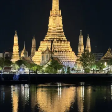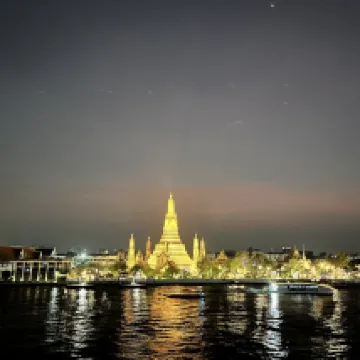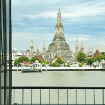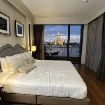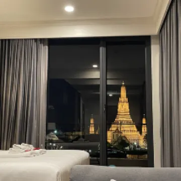 Dieses Hotel, das an ein Gästehaus erinnert, verfügt nur über sechs Zimmer, jedes mit direktem Blick auf Wat Arun, der sowohl tagsüber als auch nachts eine atemberaubende Aussicht bietet. Die Zimmer sind etwas veraltet, aber die Aussicht ist es wert. Wir hatten zum chinesischen Neujahrsfest im Voraus ein Zimmer gebucht, und obwohl der Preis etwas höher war, war es angesichts der exorbitanten Preise in Luxushotels eine willkommene Abwechslung. Der Große Palast und Wat Pho liegen in der Nähe, und der Pier zum Wat Arun liegt direkt gegenüber.