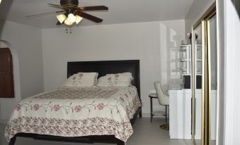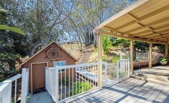 The backyard is a lovely highlight, offering a large space with stunning views of the city of Banning. It's a great spot to unwind or enjoy outdoor activities. There is a washer and dryer available on the property, but they are located outside and shared with other tenants.