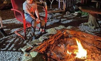 Guests share a large fire pit. Bath house, which is like stepping into your own bathroom