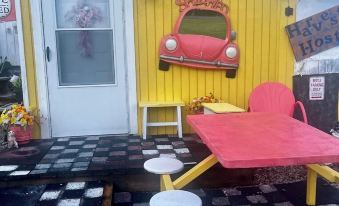 Trampoline for the older kids an a bouncy house is available for the little ones. As the garden grows guest can pick tomatoes or whatever is hanging on the vines.