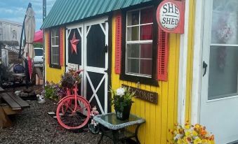 This quant little tiny house has all you will need to get away from home. One full size bed, two twins which are both in the same loft, and a murphy bed that is a queen. As you step outside here the sound of crickets , frogs ,all the night creatures God has provided for the music. Kids will love Sand, shells, and beach chairs for them to play in.