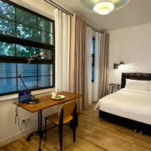 Es ist ein sehr stimmungsvolles Hotel mit kompletter Ausstattung. Beim Einchecken bekommt man einen kostenlosen Obstteller. Das Obst ist sehr frisch und das Zimmer ist ruhig. Die Backsteinwände haben einen Sinn für Design . Etwa 10 Minuten von der US-Botschaft entfernt. Das Frühstück im Hotel ist sehr gut, vor allem die Croissants und der Speck