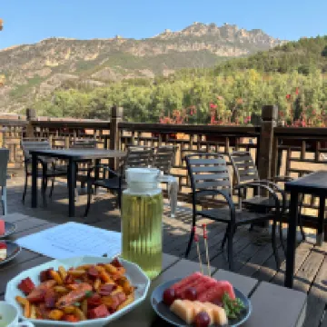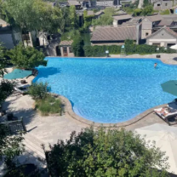 Hotel: A themed hotel conveniently located in the heart of Gubei Watertown. The hotel is tastefully decorated with all the amenities you’d expect of a 5-star hotel and offers much more. The rooms are HUGE, clean, and well equipped. Our reservation was for two rooms (Room #s 220 and 221): a Deluxe Balcony Room A with a king bed (76 sq meter with a stunning view of the Great Wall) and Superior Twin Room A with balcony (55 sq meter with a view of the hotel courtyard). We were assigned rooms next to each other so we could be close to our elderly parents. Our rooms were separately packaged with complimentary hot spring entrance tickets, Chinese/Western set meal (tried the Chinese meal at the Flavor Restaurant 望景楼 which was excellent-see photos), boat rides, and Simatai Great Wall tour tickets with round trip cable car rides. We throughly enjoyed our time in Gubei Watertown and this hotel definitely made our stay special.