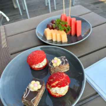 Das Frühstück wurde dieses Mal aufs Zimmer gebracht. Es war sehr angenehm, mit Blick auf die Landschaft zu frühstücken